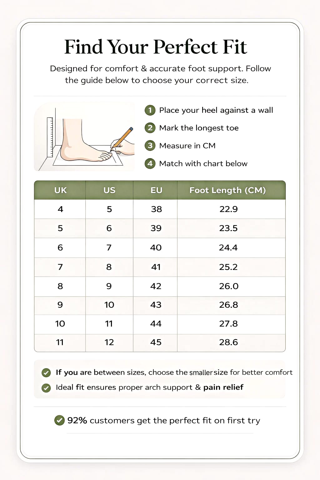 Our footwear follows UK sizing, which is the same sizing commonly used for Indian slippers and footwear.